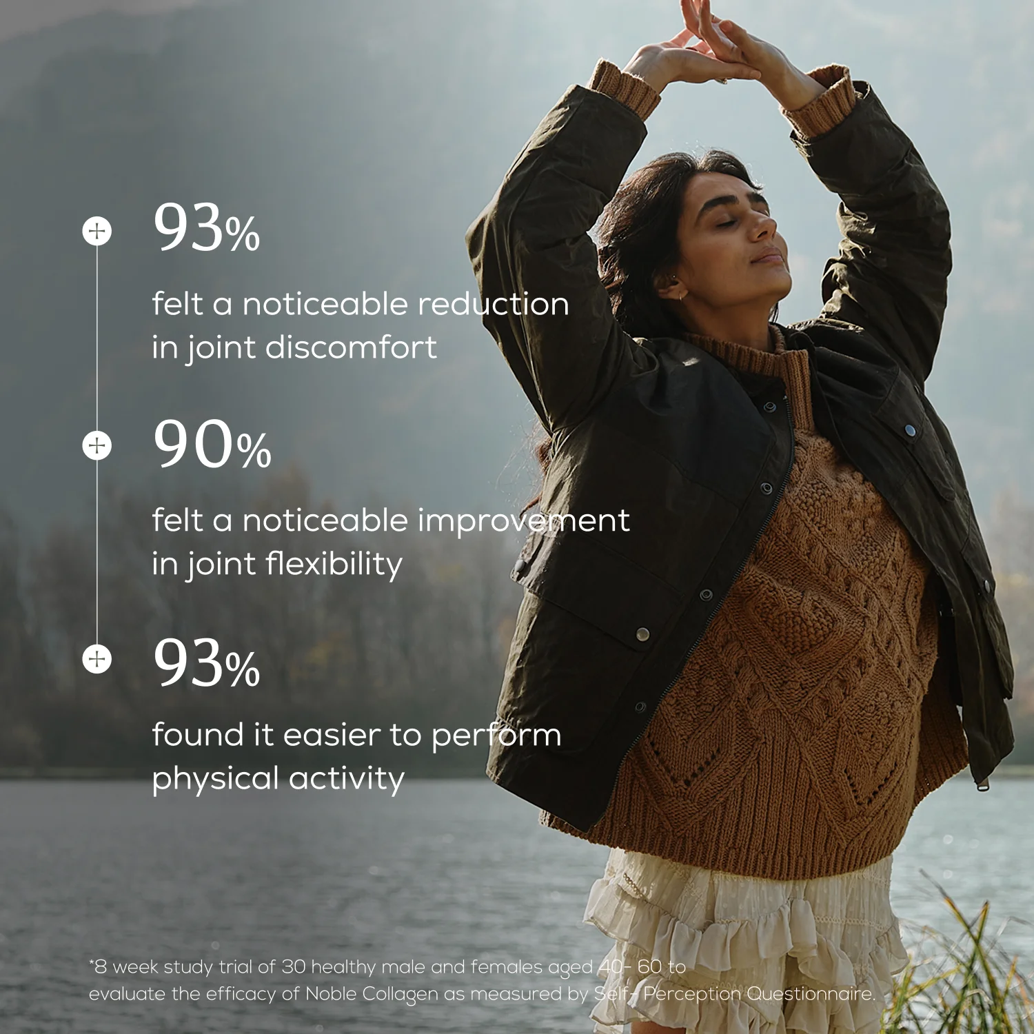 As we age and engage in life, our bodies’ natural collagen production declines which can lead to joint pain and stiffness. Noble Collagen harnesses the power of Type II Collagen, a targeted ingredient found specifically in cartilage. Proven to help protect cartilage and reduce joint discomfort one capsule at a time.